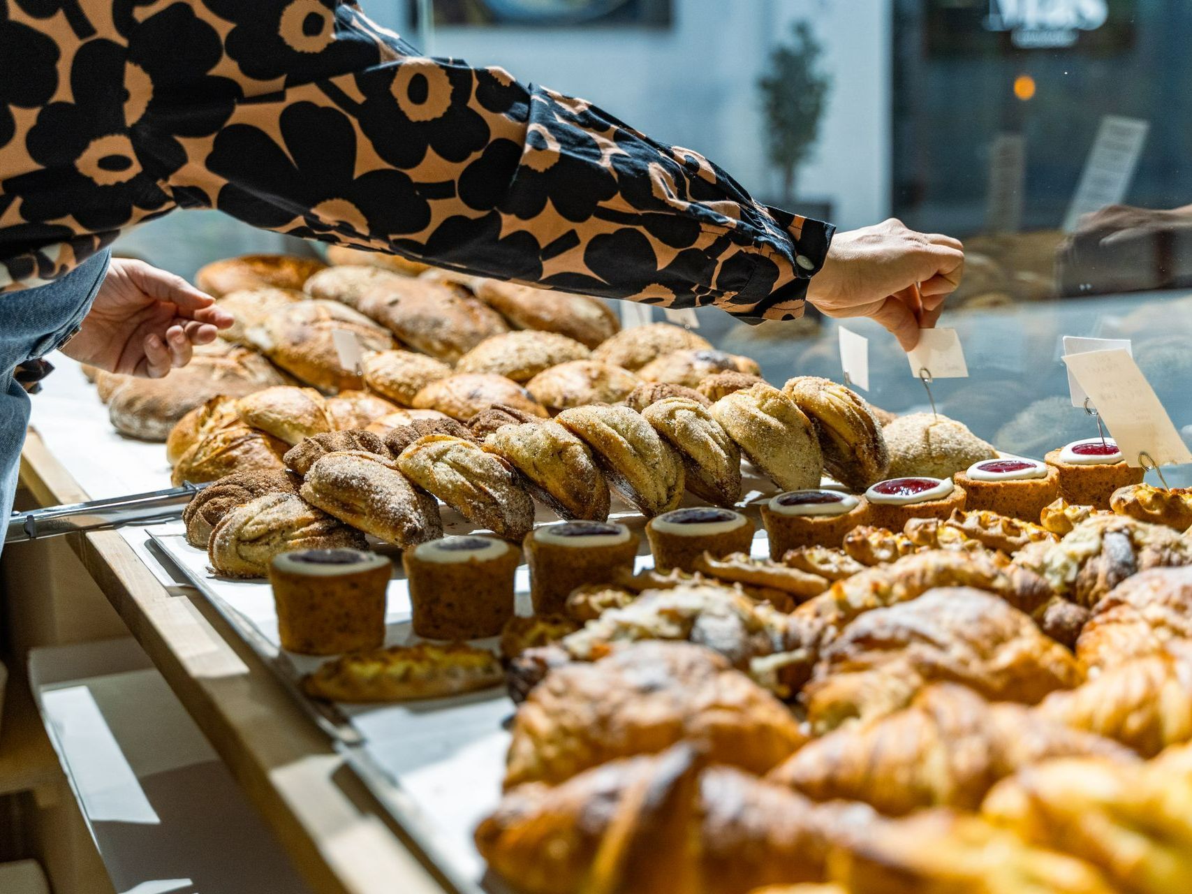 Lähileipomomme uunista tulee ulos juurella leivottuja leipiä, pullia, croissanteja ja muita herkkuja. Nappaa mukaasi tai nauti paikan päällä kuuman kahvin kera!